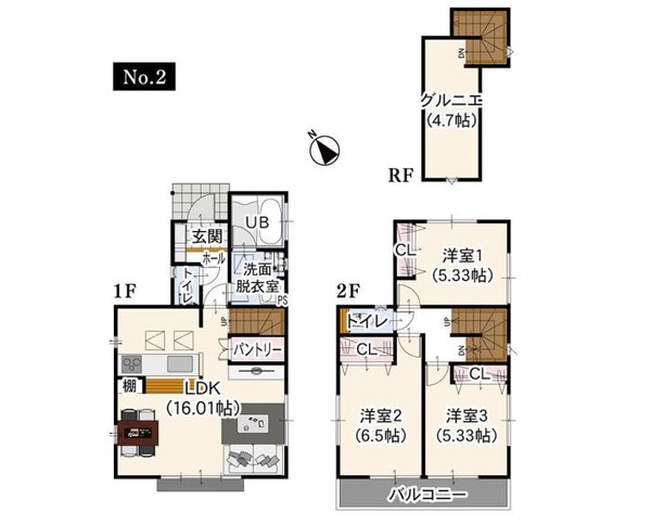 | 築年月 | 2026年1月築 | 間取り | 3LDK (LDK16/洋室6.5/洋室5.3) | ||