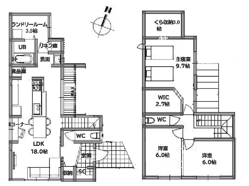 一番人気。敷地30坪以上! 孤独にならないカウンターキッチン!!