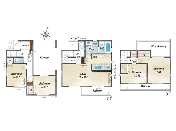 採光面 - 構造/階数 木造/地上3階建
