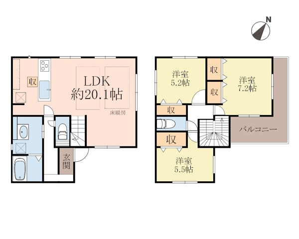 •  間取り■床暖房完備で冬もポカポカ!乾燥を抑えてクリーンな空気で健やかに暮らせる家