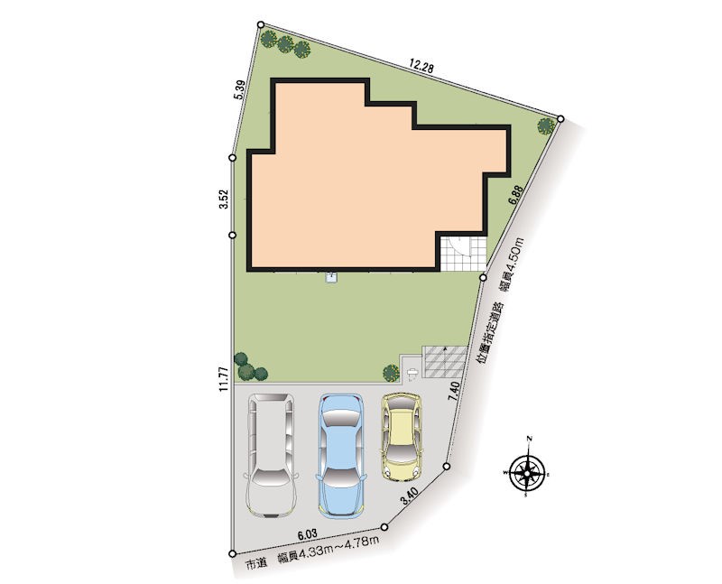 | 接道状況 | 接道: 東 公道 道路幅: 4.5m 接道: 南 公道 道路幅: 4.3m |