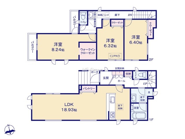 | 築年月 | 2024年5月築 | 間取り | 3LDK (LDK/洋室8.2/洋室6.4/洋室6.3) | ||