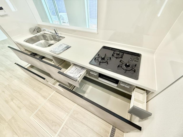 孤独にならないカウンターキッチン!! 夜も静かでゆったり家族だんらん