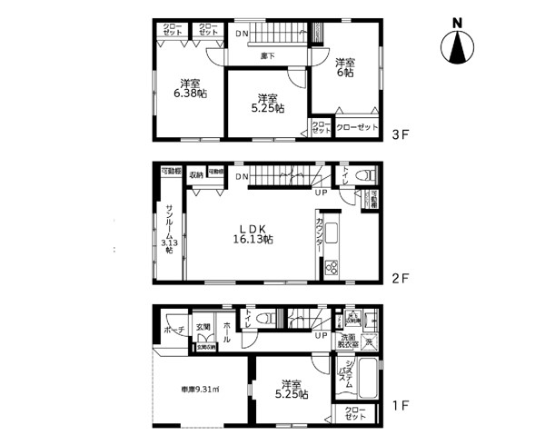 全てのお部屋を有効活用、広々3階建て 夢のマイホームは新築で!