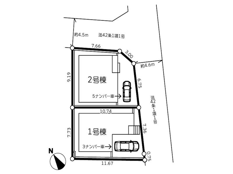 | 接道状況 | 接道: 東南 公道 道路幅: 4.6m 接道: 北東 公道 道路幅: 4.5m |