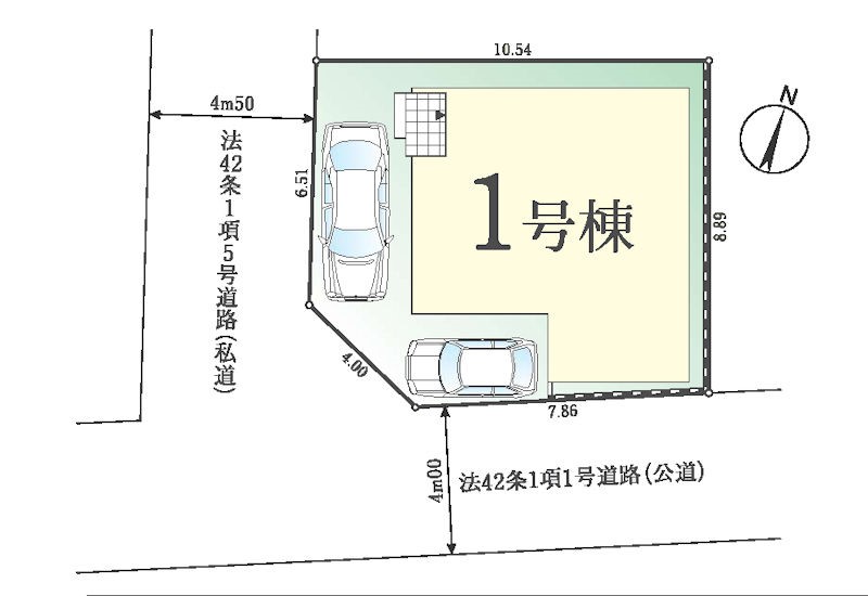 | 接道状況 | 接道: 南 公道 道路幅: 4m 接道: 西 私道 道路幅: 4.5m |