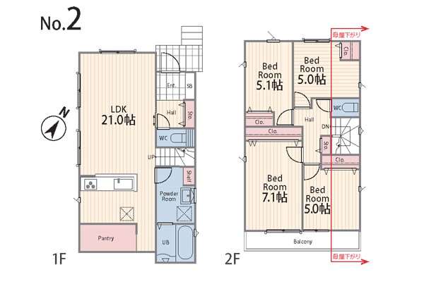 上り下りも楽々2階建て