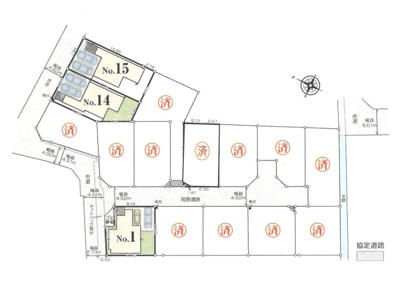 | 接道状況 | 接道: 北西 公道 道路幅: 2.7m 接道: 東 私道 道路幅: 4.5m |