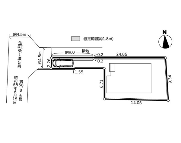 | 接道状況 | 接道: 西 私道 道路幅: 4.5m | 用途地域 |