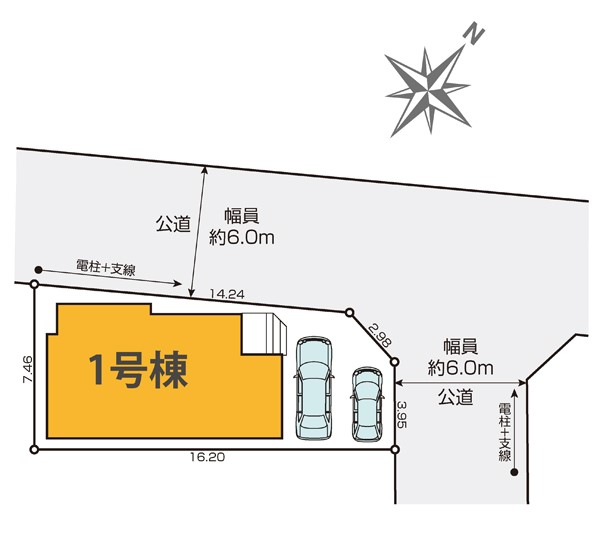| 接道状況 | 接道: 北西 公道 道路幅: 6m 接道: 北東 公道 道路幅: 6m |