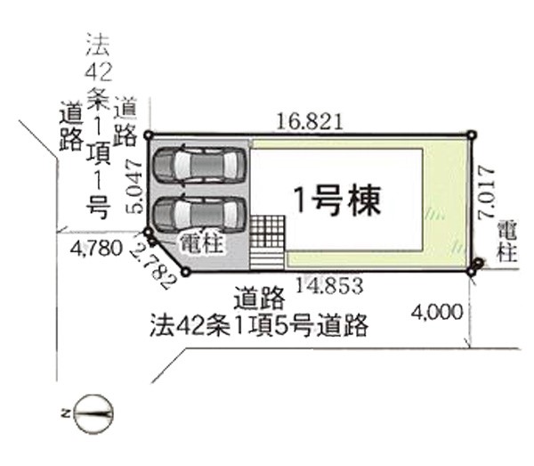 | 接道状況 | 接道: 北 公道 道路幅: 4.7m 接道: 西 私道 道路幅: 4m |