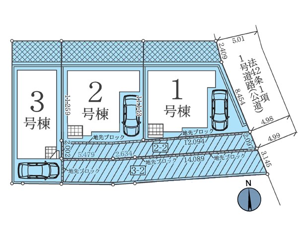 | セットバック | なし | 法令上の制限 | 第2種高度地区 下水道処理区域 宅地造成工事規制区域 日陰規制4h-2.5h4m 協定地:2-2約43.66平米3-2約68.42平米 3号棟:越境覚書有 |