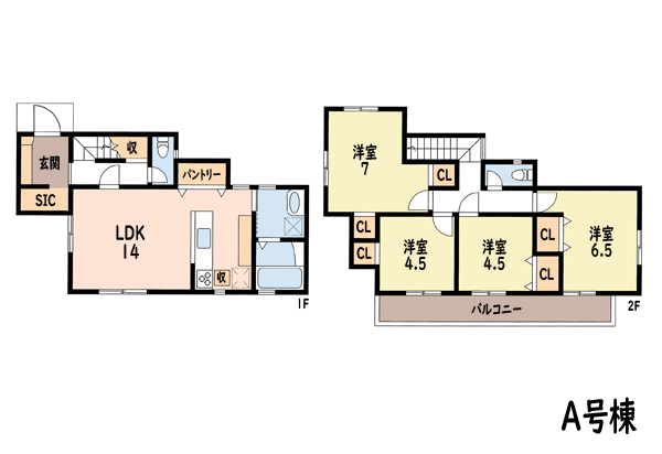 | 築年月 | 2024年7月築 | 間取り | 4LDK (LDK14/洋室7/洋室6.5/洋室6.5/洋室4.5/洋室4.5) | ||