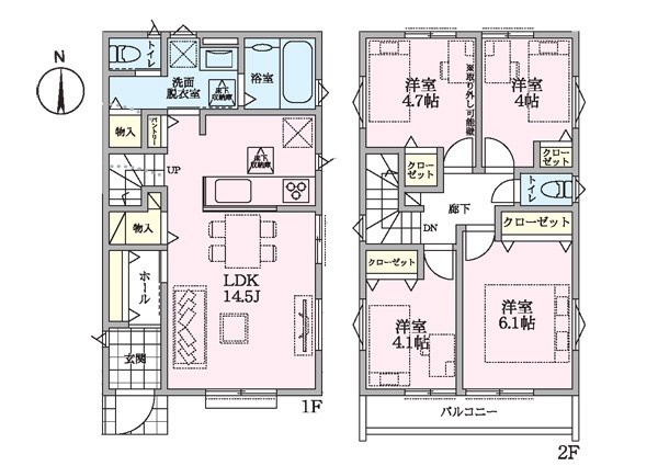 | 築年月 | 2025年3月築 | 間取り | 4LDK (LDK14.5/洋室4/洋室4.7/洋室4.1/洋室6.1) | ||
